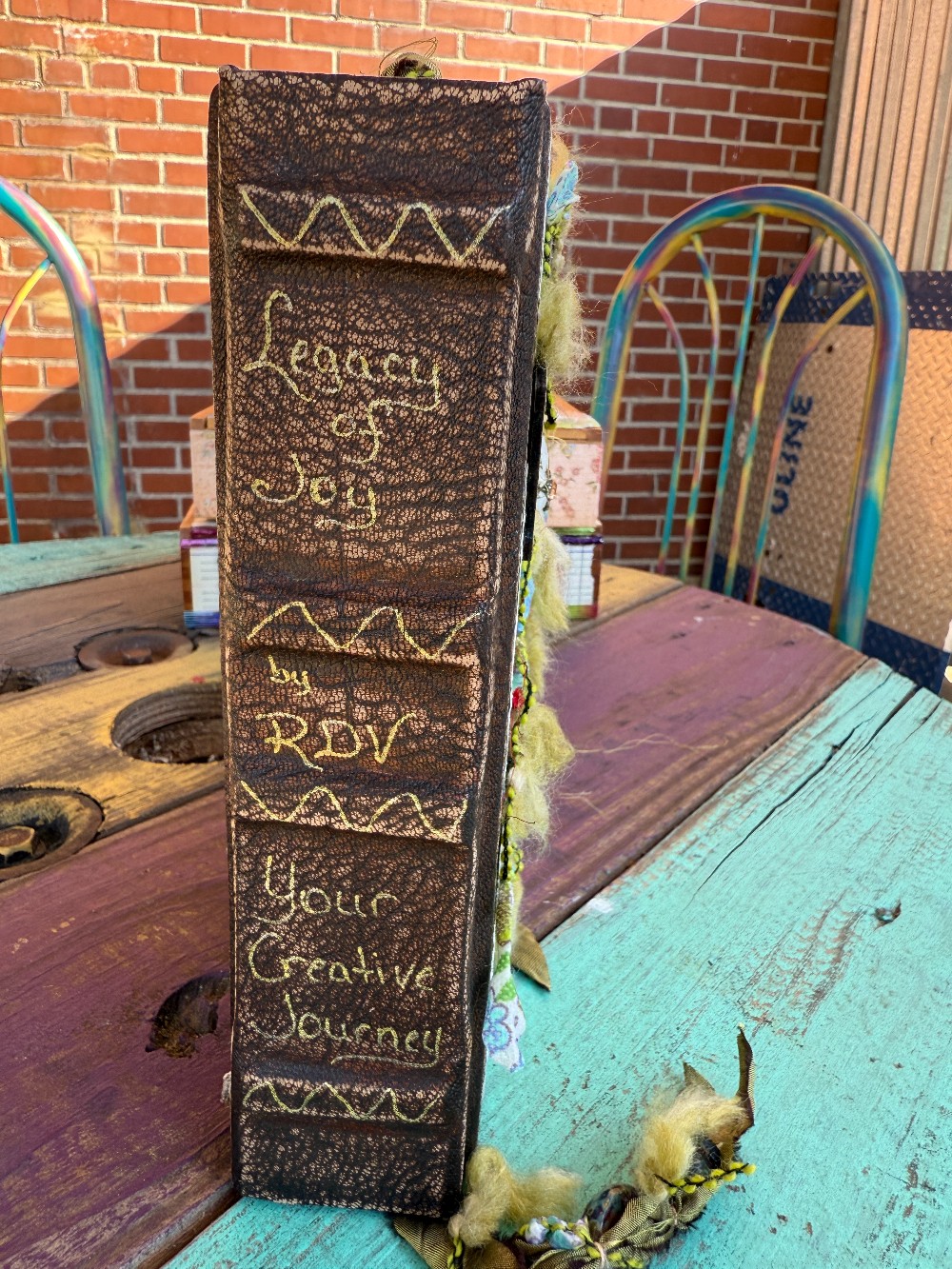 From the Legacy of Joy collection by artist Renee Smith of Rainy Day Vintage, this handmade journal features deckled-edge pages ideal for sketching, painting, or writing. Each journal in the series is hand-embellished and uniquely named by Renee.