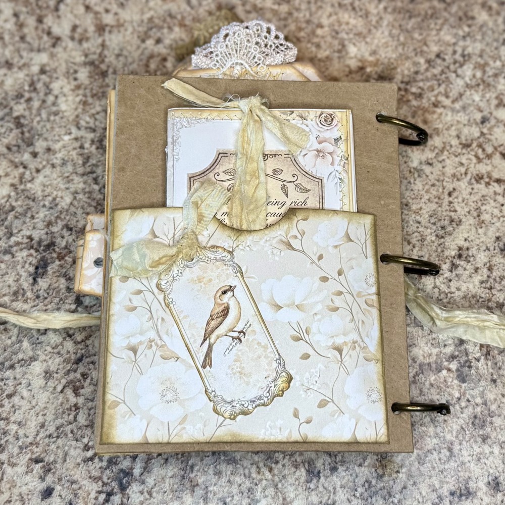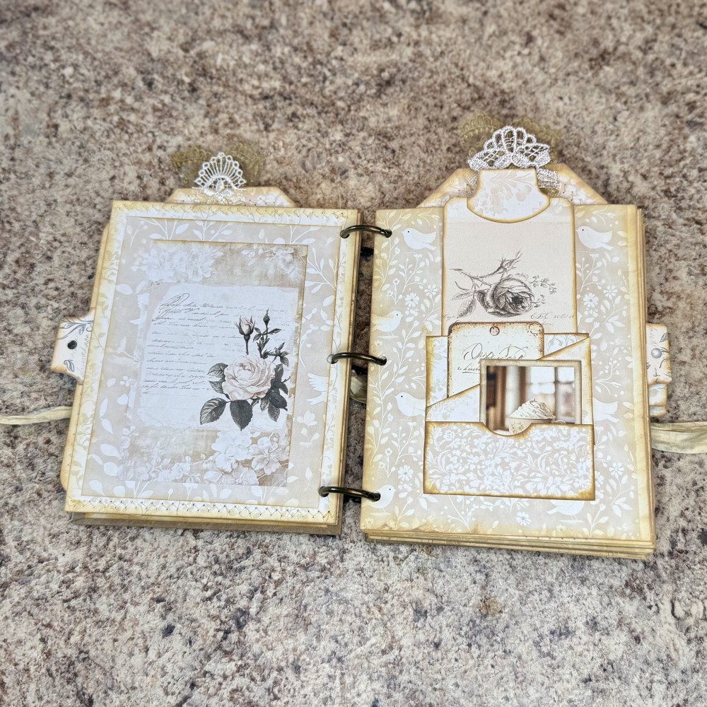 This stunning ring-bound journal is filled with over 56 pages of creativity and charm! Perfect for writing, memory keeping, or collecting your favorite keepsakes. Every page features gorgeous vintage details, soft tones, and elegant embellishments.