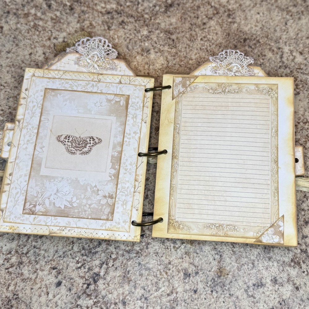 Tied with a delicate ribbon and adorned with lace, butterflies, and florals — this journal is a true work of art, ready to hold your thoughts, dreams, and treasures. 💛