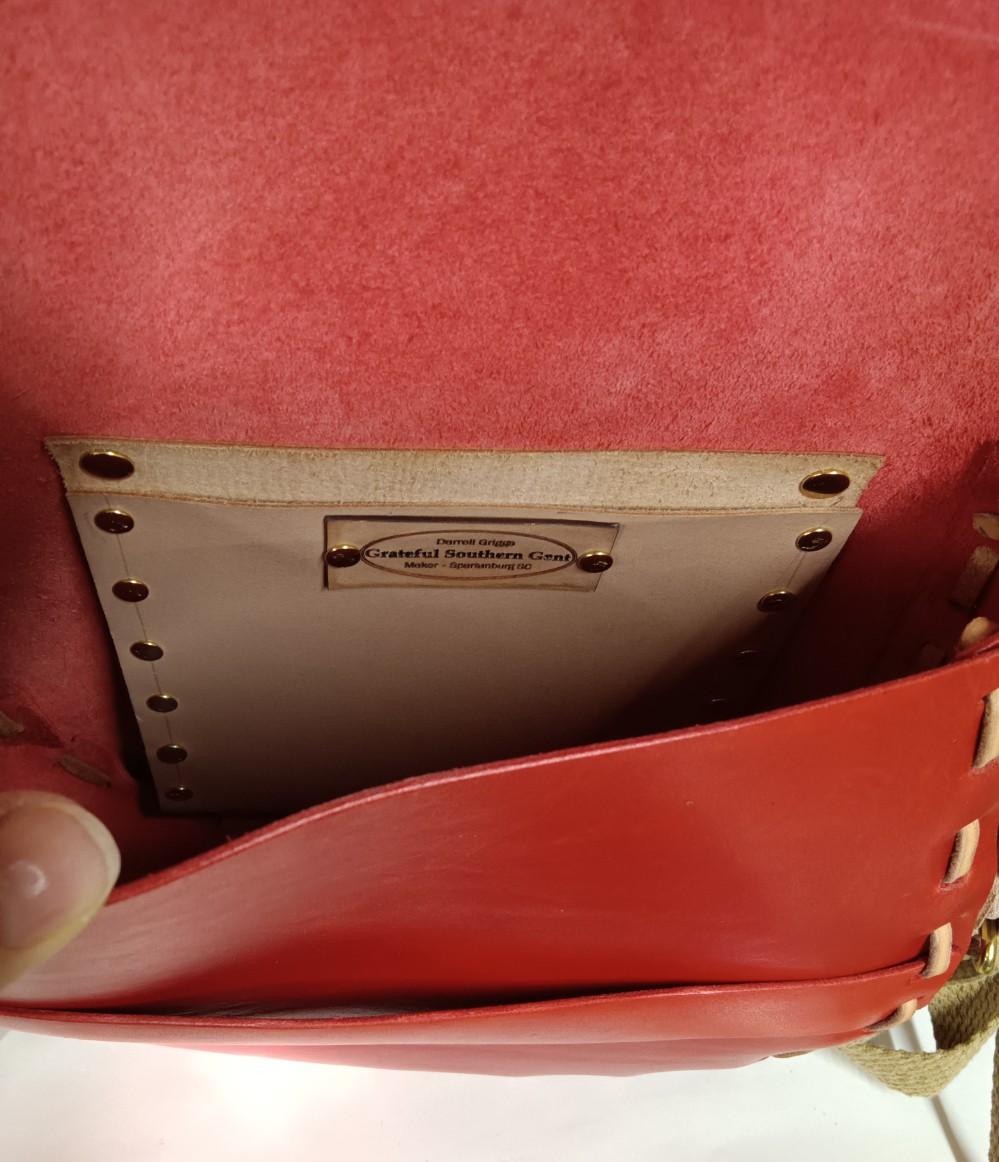 Bright Red Full Grain Leather Crossbody with Webbed Adjustable Strap