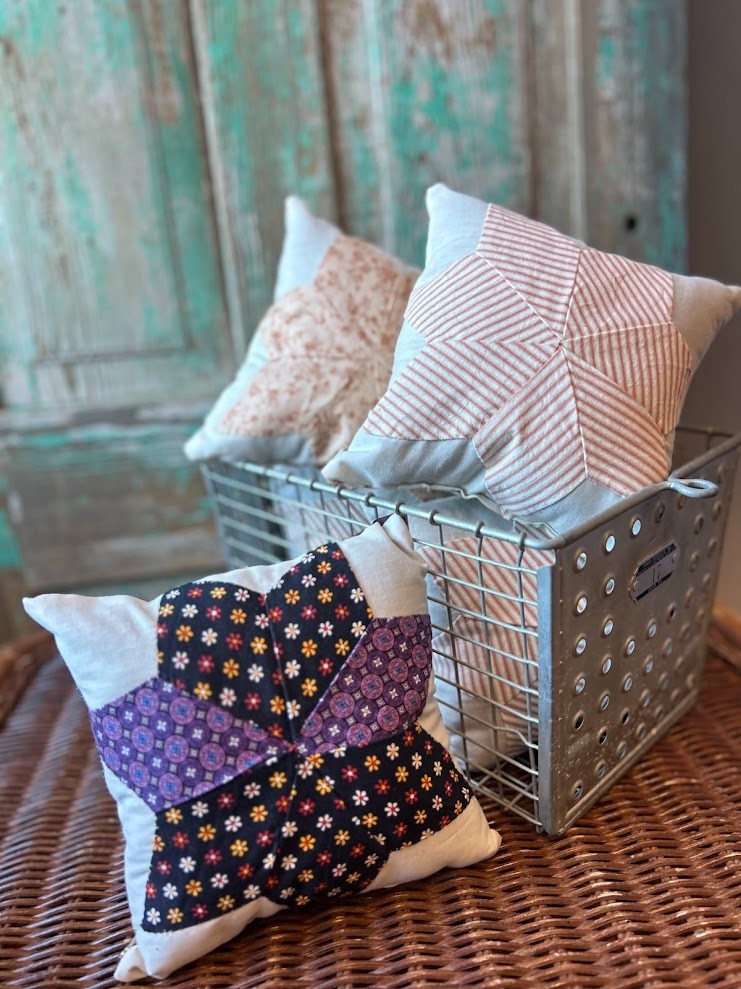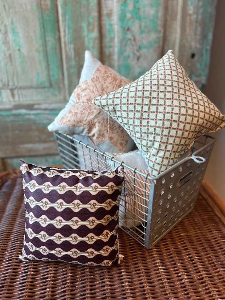 Upcycled from a vintage quilt top and back with a heavy cotton. 10"x10"