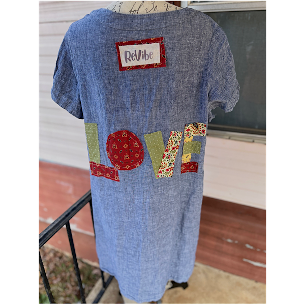 Shirt: mid length chambray overshirt with vintage vibe patches