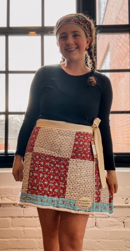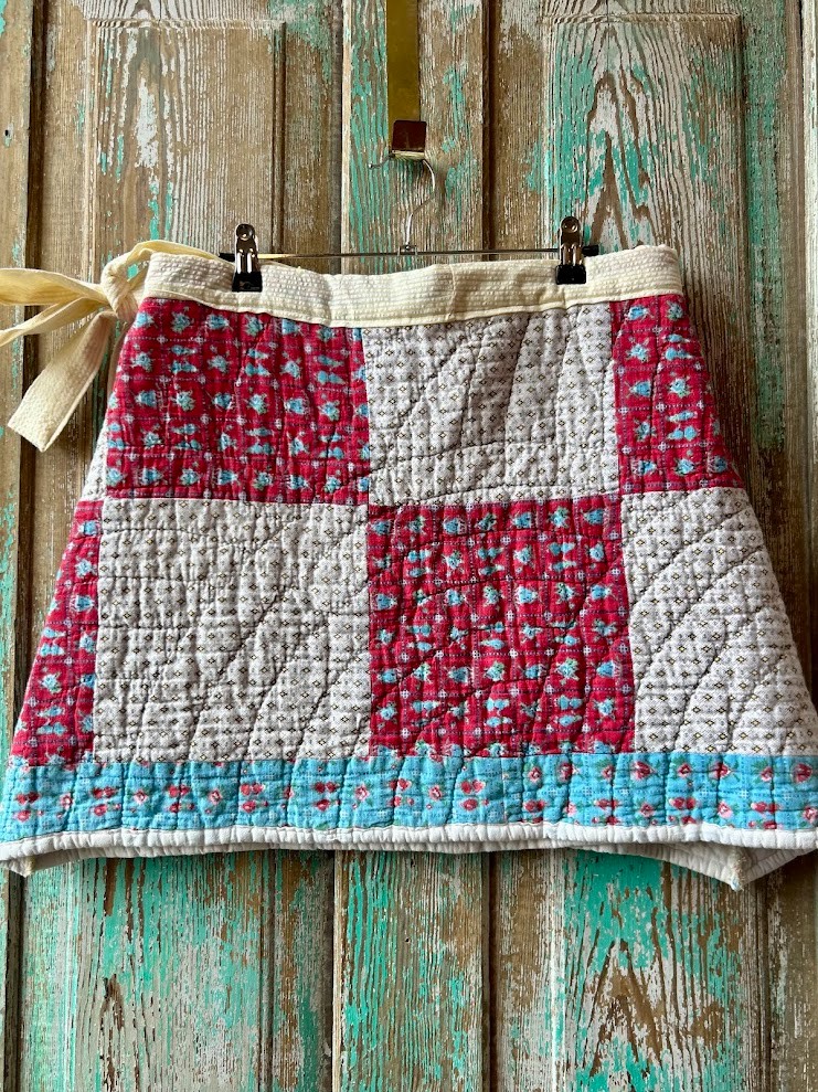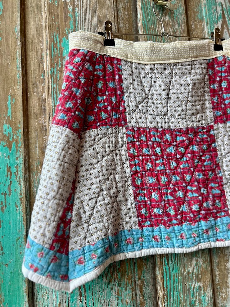 Upcycled "Bella" Vintage Quilt Mini Wrap Skirt: Women's Medium.