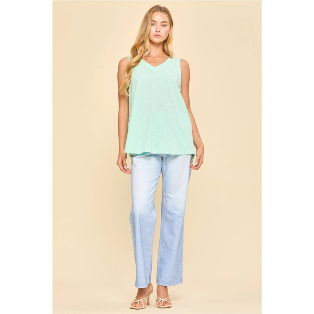 Keep it simple and basic with this v neck cotton top in Mint. Made from soft, breathable cotton, this top offers comfort and versatility for everyday wear. The flattering v neckline adds a touch of elegance to its classic, casual design.